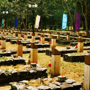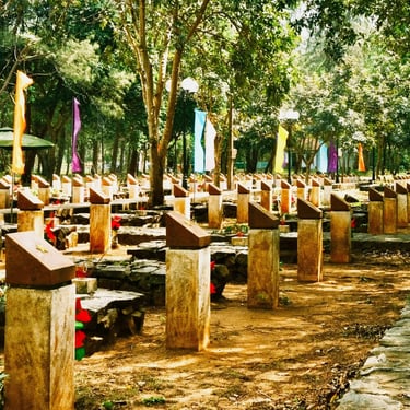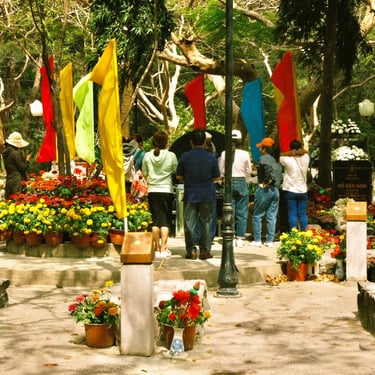 The cemetery transforms into a sea of flickering incense and white flowers. Locals come to pray, to remember, to leave offerings for Vo Thi Sau and the others who rest there. I watched families kneel in prayer, their faces lit by candlelight, and I knew my camera had no place in that moment.